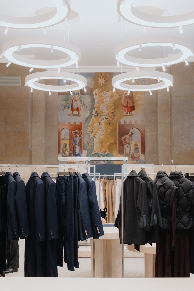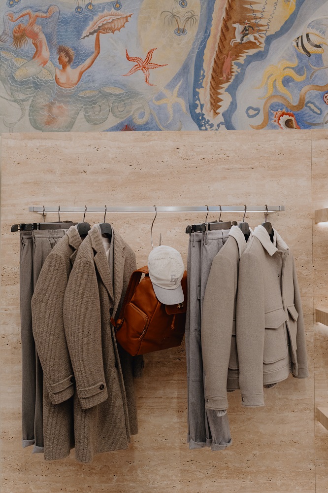 Na loja, a oferta é focada sobretudo na moda masculina, embora inclua também propostas para mulher, miúdos, casa e lifestyle. Todas as peças são produzidas em Itália, em materiais nobres como a caxemira ou a vicuña. A filosofia da marca assenta no conceito de luxo discreto, aposta no minimalismo, na qualidade e na intemporalidade. Não há logótipos em destaque, nem elementos exuberantes. Outro dos destaques é o serviço made to measure. Os clientes podem escolher tecidos e ajustar medidas diretamente na loja — seja para uma camisa branca, um blazer navy ou um fato completo. Depois, as peças são produzidas em Itália.